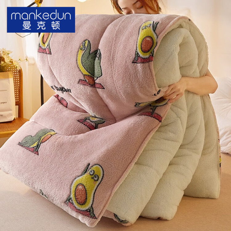 曼克顿 羊羔绒被子 冬季加厚保暖被芯双面绒学生宿舍冬被被褥床上用品 L灰色【牛奶绒+羊羔绒】刺绣款 180x220cm 约7斤冬被