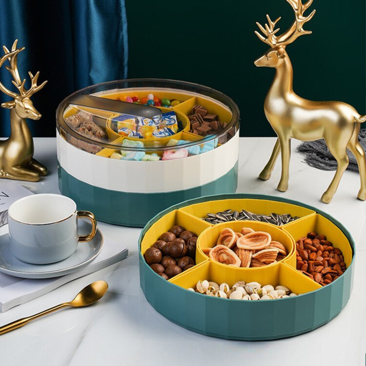 维简(Vilscijon) 干果盘分格带盖创意家用客厅干果瓜子坚果盘子塑料点心零食拼盘
